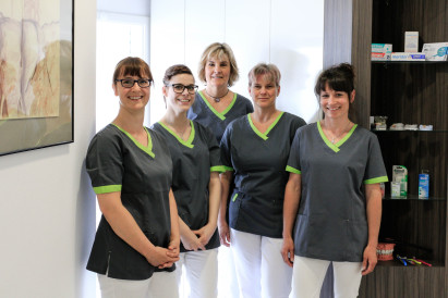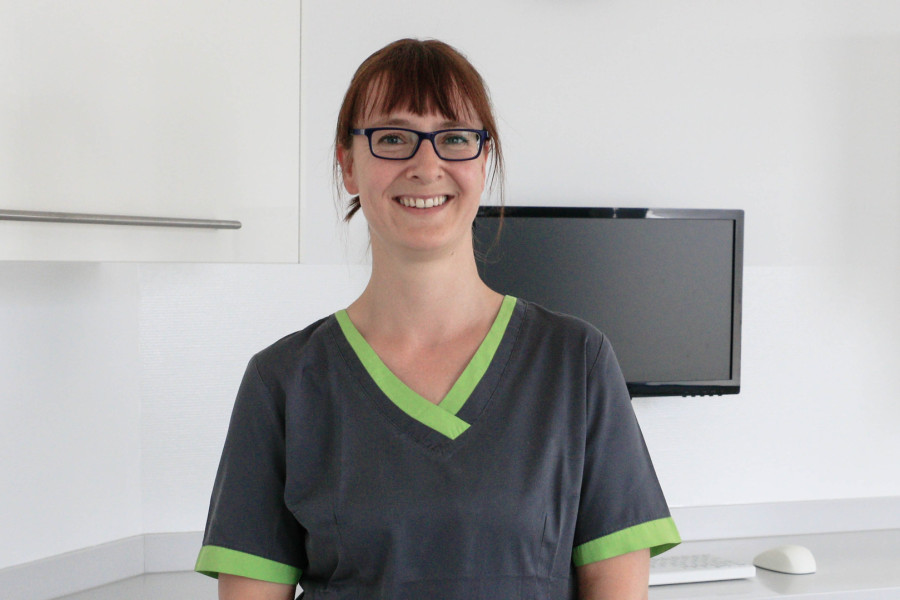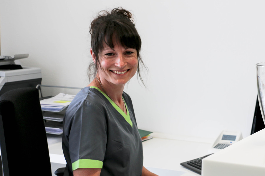 Angelika Schwarzentrub assistiert im Behandlungszimmer und besitzt die Zusatzausbildung, um selbstständig professionelle Zahnreinigungen durchzuführen.